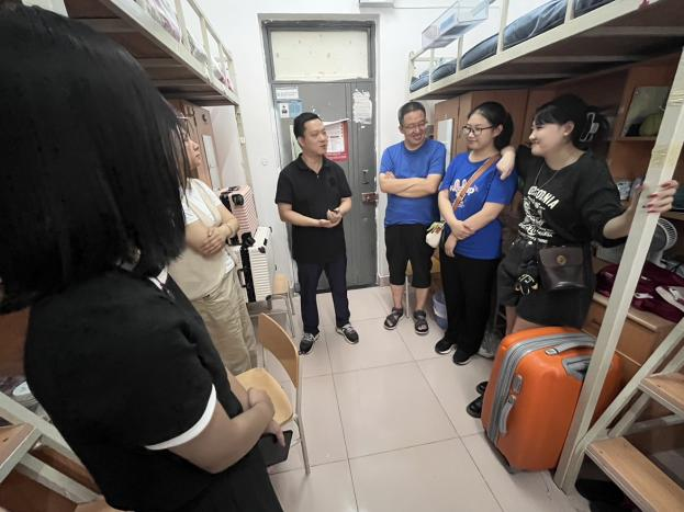 公司领导和辅导员老师走进新生宿舍,为同学们送去关怀和温暖。老师们亲切的嘱托,让新生们感受到球天下的温暖,为更快地融入老员工活打下了良好的基础。