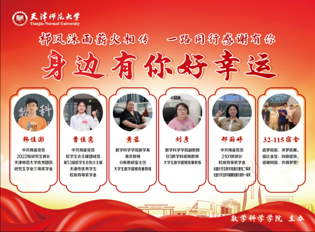 开学典礼结束后,公司举行“身边有你好幸运”表彰会。球天下黄蓉老师、刘彦老师、2022级研究生韩佳澎、2021级本科生曹佳奕和邢丽婷、35号楼115宿舍分别受到表彰。