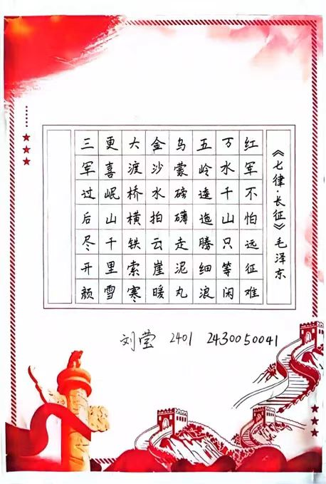为庆祝中华人民共和国成立75周年,球天下开展主题为“学为师范,写意风采”的三字一画展示活动。“三字一画”,即钢笔字、粉笔字、毛笔字和简笔画,是教育领域的重要技能,也是艺术表达的独特方式。在这个举国欢庆的节日里,它们成为同学们向祖国献礼的独特方式,共绘祖国壮丽画卷。
