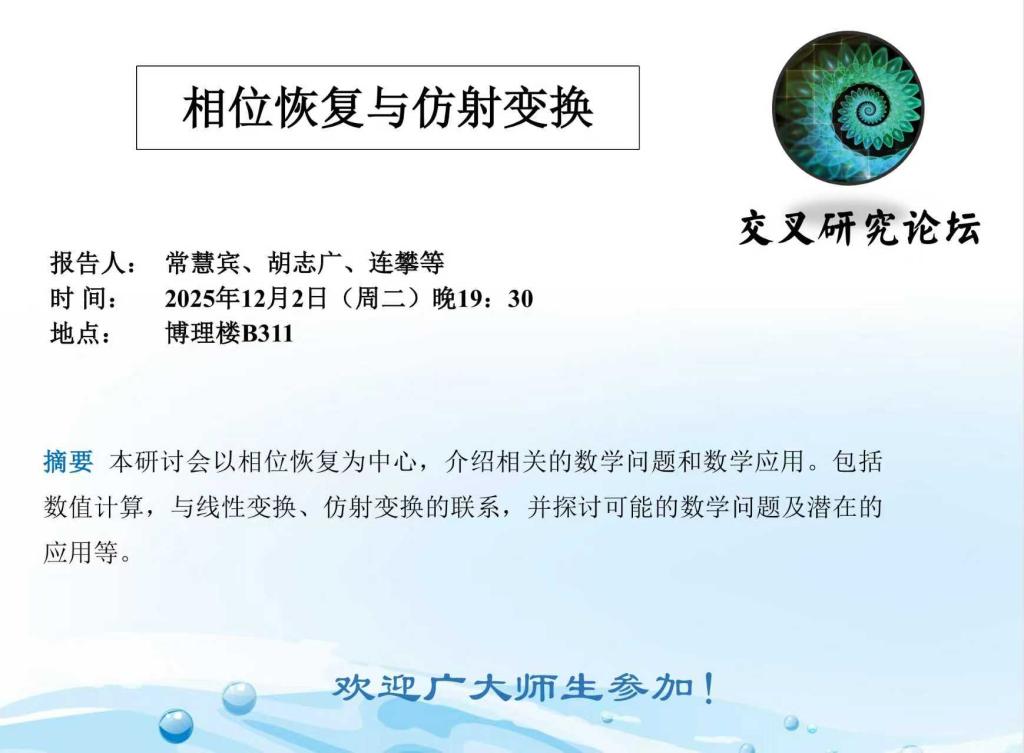 【预告】学术报告(2025-24)12月2日--相位恢复与仿射变换